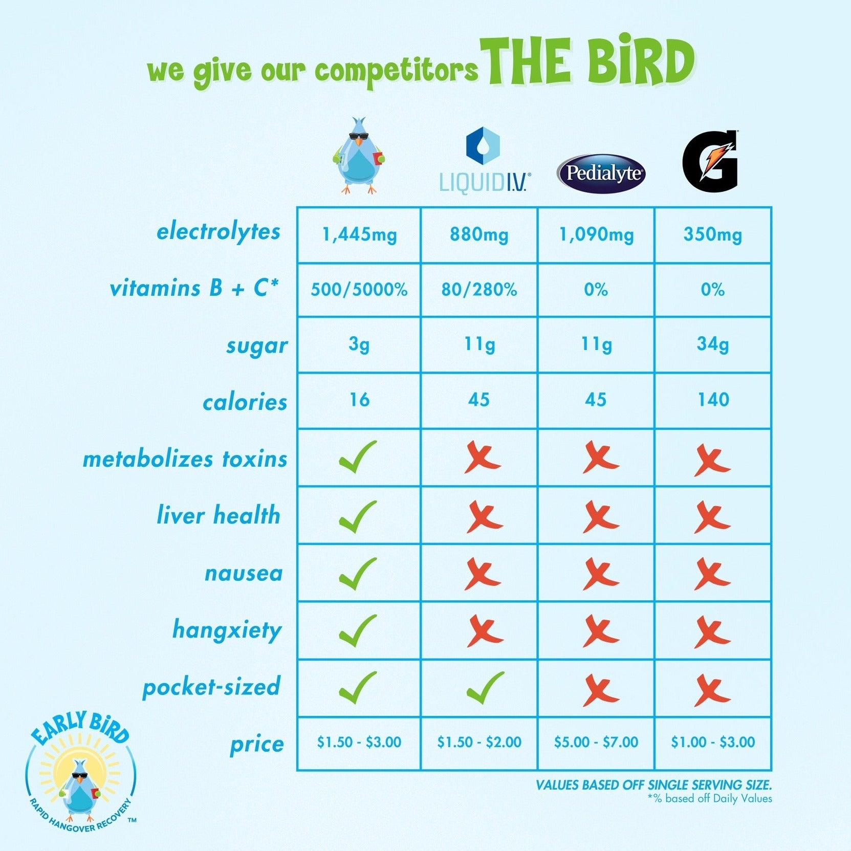 Frankly, we at Early Bird think that is bird sh*t! 💩 Join the flock 🐥 and get yourself a bird pack today. For those who want to feel alive at night, and the next day.